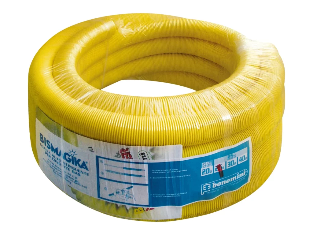Guaina corrugata estensibile colore giallo per tubo gas Bonomini in rotoli