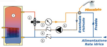 Con valvola di ritegno su ingresso acqua fredda e ingresso ACS da accumulo solare