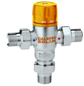 Miscelatore termostatico per acqua calda sanitaria regolabile da 3/4″ con attacchi a bocchettone, marca Caleffi modello 2521