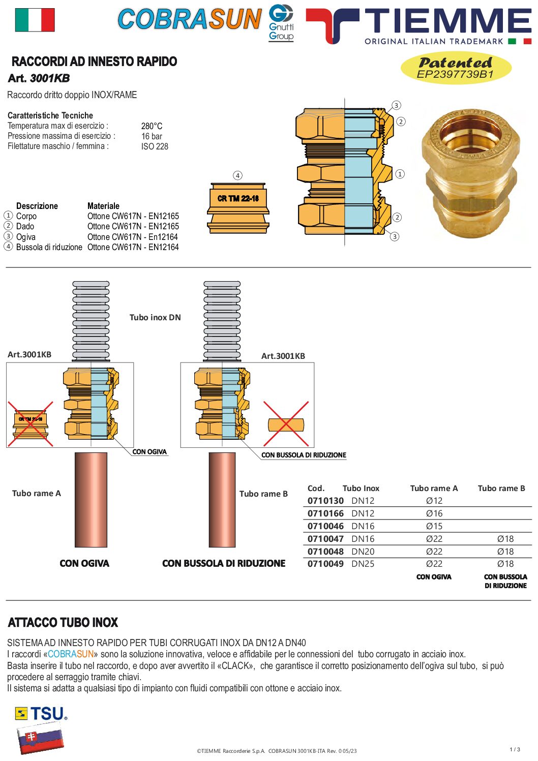 | Misure | 16×16, 16×3/4"F., 16×3/4"M., 20×1"F., 20×1"M., 20×20, 20×3/4"F., 20×3/4"M., 25×1"1/4M., 25×25, DN16x22/18 rame, DN20x22/18 rame, DN25x22/18 rame |
